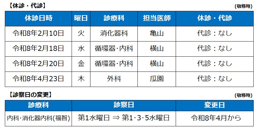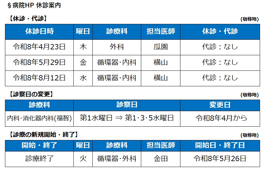 変更等ございましたらホームページ上にてお知らせさせて頂きます。
