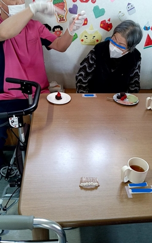 行事 ひな祭り(イベント)3階フロア タグ:スマートフォン対応 ピュアネス藍 作成 2026-03-11 本日はひな祭りのイベントを行いました。 食レクで職員がまずクレープの生地を作り、あんことイチゴを巻いてひな人形風のおやつを作っていただきました。 お手本です(^^)/ 職員が作り方を説明させていただきました。 手を動かす立派なリハビリですね(^^)/ 女性はメイクをさせていただきましたところ、皆さん喜ばれていました。 男性は食べるのに必死になられている方もおられました。 皆様、ご満足いただいたようでよかったです。